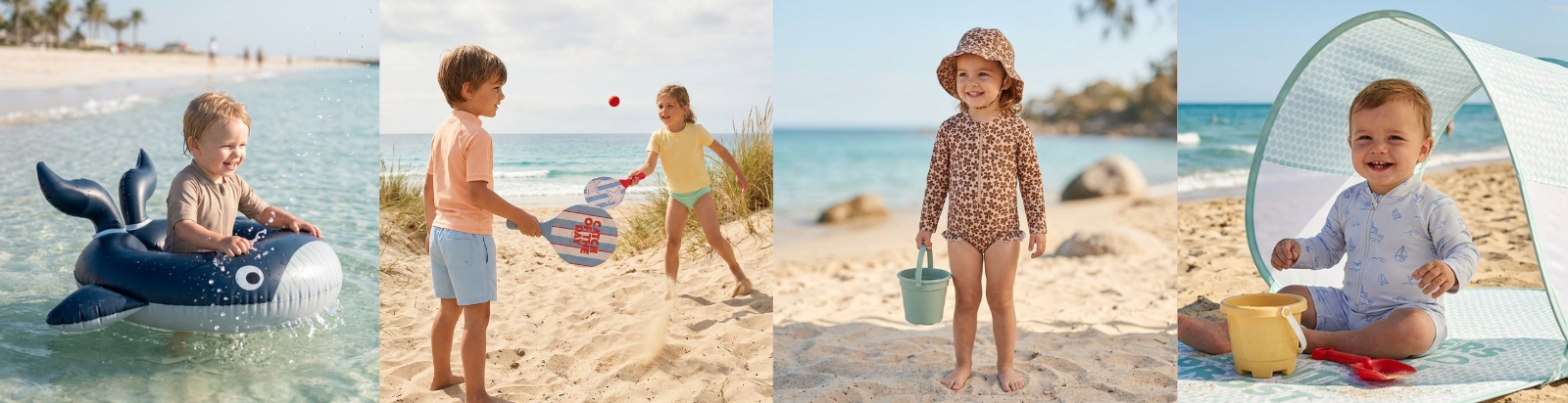 mingi, veste de inot, dar si costume de baie, palarii, prosoape, poncho.